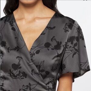 NWT 41 Hawthorn Satin Faux Wrap Floral Print Dress Grey and Black Floral Size M