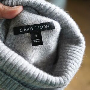 NWT 41th Hawthorn 100% Cashmere Womens Gray Cowl Neck Tunic Sweater Size Small