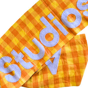 NWT $420 Acne Studios Veda Checked Wool Big Logo Scarf 80"x37" Orange Purple
