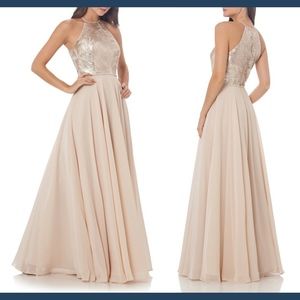 NWT $425 Carmen Marc Valvo Infusion Sequin Embellished Chiffon Gown [SZ 6 ] M777