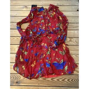 The Kooples Paris Women’s Red Butterfly Print Crinkle Long Sleeve Dress Size 2