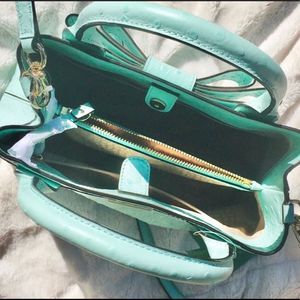 👜Sweet shade of Robins Egg Blue in ostrich texture made of leather