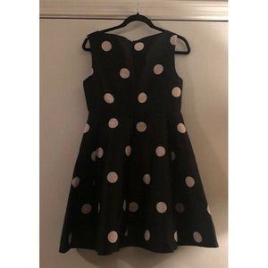 Kate Spade Spotlight V-Neck Polka Dot Dress. Adorned with playful polka dots, a festive and flattering dress. Color is "Ink", a deep blue/black with large pale pink dots. As seen on Anna Kendrick! Structured fabric with a slight shine is sculpted into a perfectly sweet fit-and-flare V-neck dress with smartly folded pleats and a smattering of whimsically oversized polka dots. 35" length Hidden back-zip closure. Features snaps on the wide straps to securely fasten around bra straps for secure and worry free fit. V-neck. Sleeveless. Lined. 100% polyester. In US size 4. New with tags. Originally retailing for $448. Sold out everywhere!