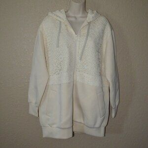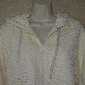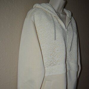 NWT $459 Sz 40 6 TwinSet Ivory Lace Detail Oversized Zip Up Hooded Jacket