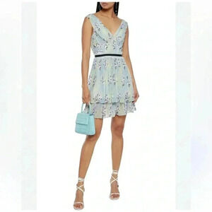 NWT $467 Self- Portrait Floral Lace Printed Chiffon Mini Cocktail Dress Sz 6