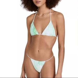 NWT $49 Good American Matte Tiny Tie Fixed Bottoms Green Marble 3 ( Us Lg)