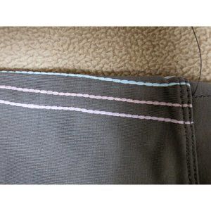 Brand new with tags attached. These Marc New York Performance leggings are made of 90% cotton and 10% spandex. They have a banded waistband and are 7/8 in length, meaning they are more of a cropped style. Machine wash. They have 4 colored stitched stripes down the outside of each leg. Those colors are pink, sort of a light peach, light blue and light gray (not quite white). The color of the leggings is called Carbon ... a gray color. Please see photos for measurements that were taken without stretching the fabric. Size Medium. Retail $49.