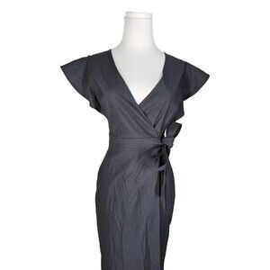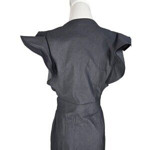 Elevate your wardrobe with the ALC Walker Midi Wrap Dress, a versatile piece that transcends occasions from business meetings to formal events. The dress features a flattering V-neckline and a ruffle-shoulder design that adds a touch of elegance. Its sleeveless style with flounce cap sleeves and a tie closure ensures a secure and comfortable fit, while the belted waist emphasizes a sleek silhouette. Crafted from a premium blend of viscose and linen, this dress promises both comfort and durability. The solid black color and midi length make it a timeless addition to any collection, suitable for all seasons. With its pockets for convenience and dry clean instructions for maintenance, this gorgeous dress is a staple for any fashion-forward individual. Career wear, professional