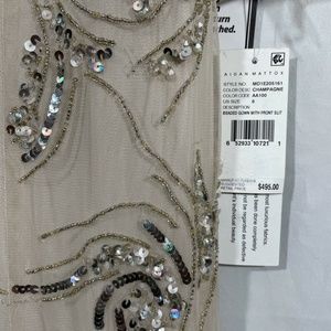 ![NWT $495 Aidan Mattox 3/4 Sleeve Beaded Column Gown in Champagne [SZ 6 ] - Picture 14 of 16](https://di2ponv0v5otw.cloudfront.net/posts/2025/10/07/68e51a88013d2ab482aac2da/m_68e51a8e013d2ab482aac5b2.jpeg)