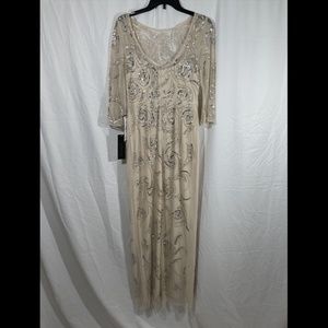 NWT $495 Aidan Mattox 3/4 Sleeve Beaded Column Gown in Champagne [SZ 6 ]