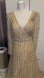 Champagne floor length gown with sheer long sleeves, gorgeous silver sequin, and beaded waist.