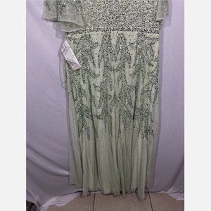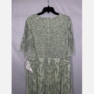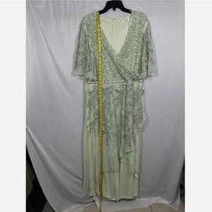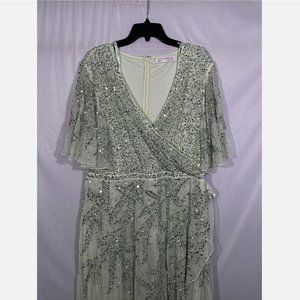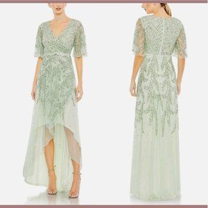 NWT $498 Mac Duggal [ 18 ]‎ Sequined Butterfly Sleeve High Low Gown Sage Greeen