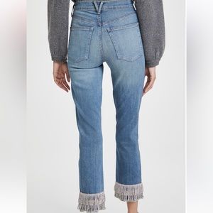 NWT $498 Veronica Beard Jean 28 Straight Ryleigh Pants with Fringe Rhinestones