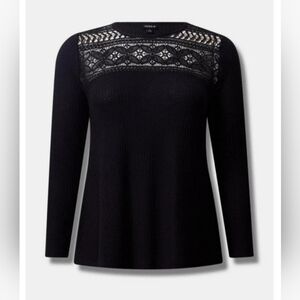 NWT 4X TORRID Waffle Knit Long Sleeve Crochet Yoke Top Deep Black