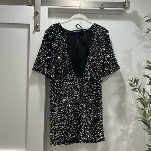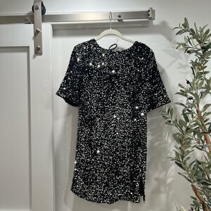 NWT 4th & Reckless Marca Silver Sequin Tie-Back Short Sleeve Shift Dress Tall XS