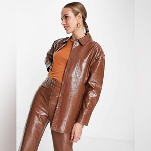 SOLD AS SET. Faux leather croc patterned brown set. Sold on ASOS. Perfect condition, brand new with tags. Jacket is size XL, Bottom is size XXL. If you would like either of these items separately, please feel free to message me!!