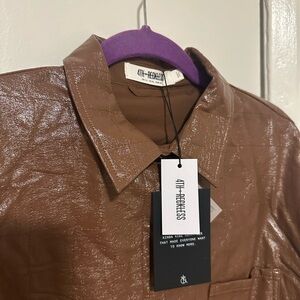 NWT 4th & Reckless Oversized Leather Look Set Chocolate Brown XL Top XXL Bottom