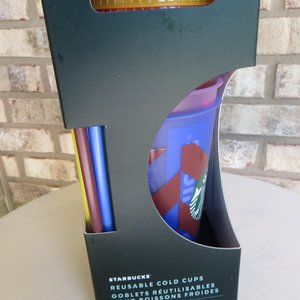 NWT 5 Starbucks reusable cold cups with lids & straws. Size 24oz.