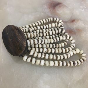 NWT beautiful boho bracelet 5 strand beaded stretch bracelet I believe the beads to be shell focal is made of polished wood more closet choices blazers dress pants jeans dresses casual and dress tops ties boots active wear and my 2 for $10 sale items over 100 choices items added daily bundle your likes for a private offer flat shipping counter offers accepted