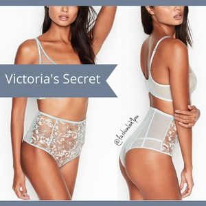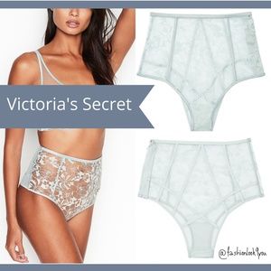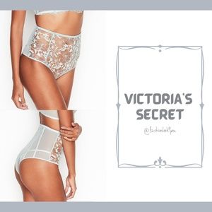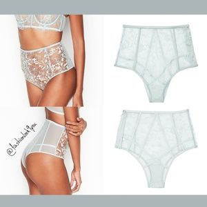 NWT $50 Victoria's Secret Blue Embroidered Zip Sheer Cheeky Panty [ Large ]