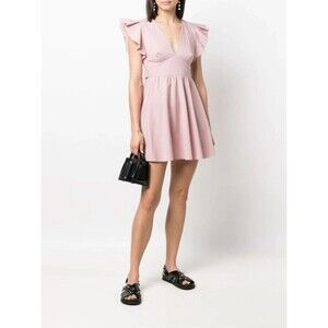 NWT. $505 RED VALENTINO Empire-line Fluted Mini Dress In Pink IT42 US4