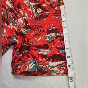 5.11's stylish tropical red motif, men's shirt perfect for casual outings. Whether going fishing, camping, hiking, canoing, or boating. Features a vibrant design that stands out. Comfortable and trendy for everyday wear. Breathing, all over technology and vents. Skin can lightly be seen through the shirt.
