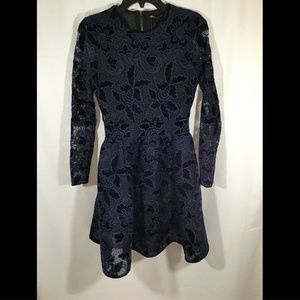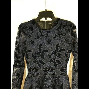 NWT $515 Maje Role Guipure Lace Fit & Flare Dress in Marine Blue [SZ 1 ] #G418