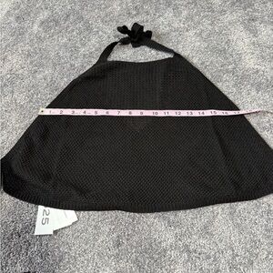 Black crochet mesh halter. Ties and neck and waist. 100% Cotton.