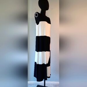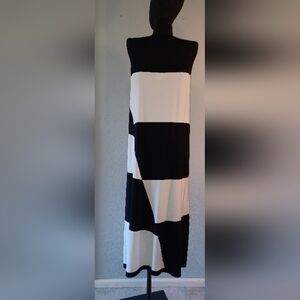 beautiful new with tags black and white color blocks long dress. 525 America Born in Bklyn. asymmetrical striped blocked design.