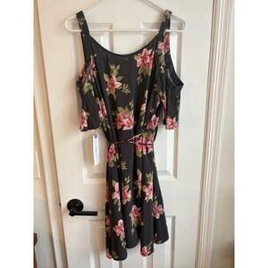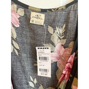 NWT $54 O'Neill Womens Medium Black/Gray Floral Print Cold Shoulder Wrap Dress