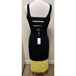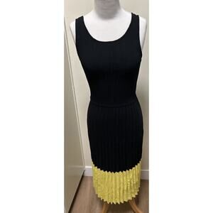 NWT $550 DEREK LAM 10 CROSBY Black Yellow Color block Ribbed Pleated Dress - XS