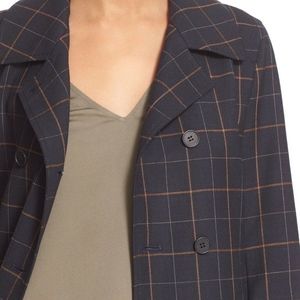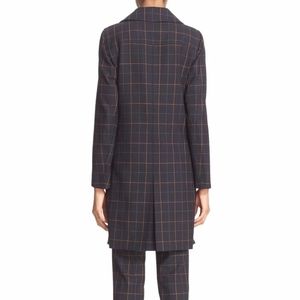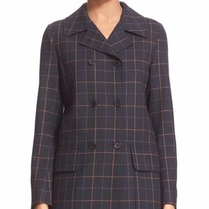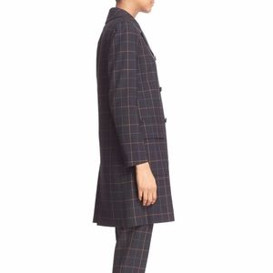 NWT $585 Theory 'Alba' Tile Check Long Jacket in Navy - size Small!
