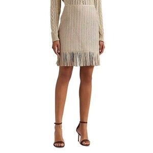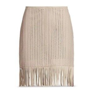 NWT $595 Ralph Lauren SKIRT Fringe Trim Woven Leather Pencil 100% LAMB LEATHER