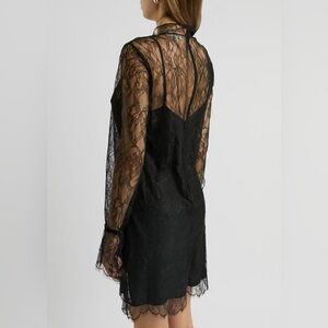 Drama is a given in the Lace Shift Dress. Covered in the intricate sheer design, the V-neckline slip serves as the perfect base for a lacey mock neckline, extended cuffs and scalloped hem. Team yours with a heeled boot, or black stiletto for date night.