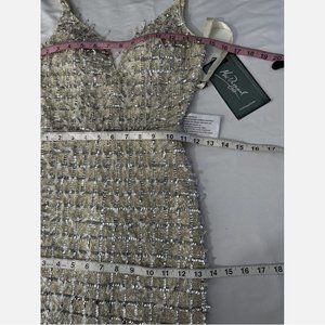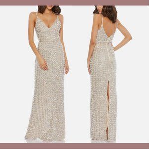NWT $598 Mac Duggal [ 0 ] Geometric Embellished Crystal Drop V-Neck Gown‎ Nude