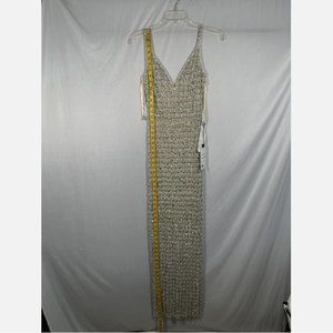 NWT $598 Mac Duggal [ 0 ] Geometric Embellished Crystal Drop V-Neck Gown S782