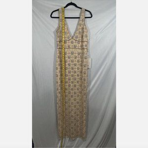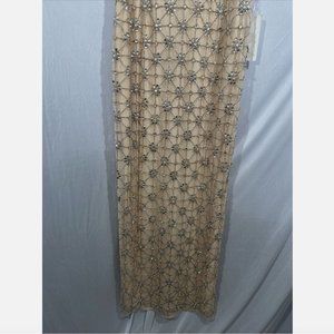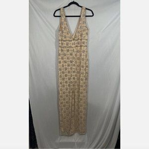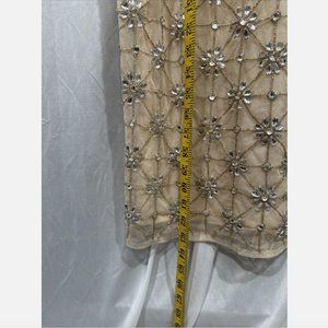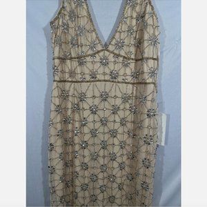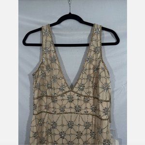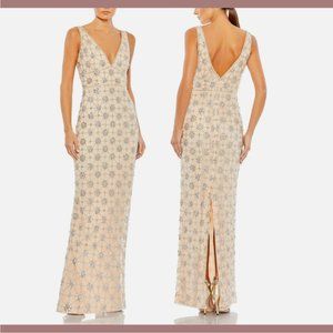 NWT $598 Mac Duggal [ 10 ] Sleeveless Hand Beaded Floral V-Neck Gown Nude Q645