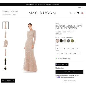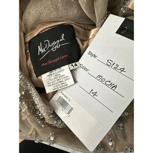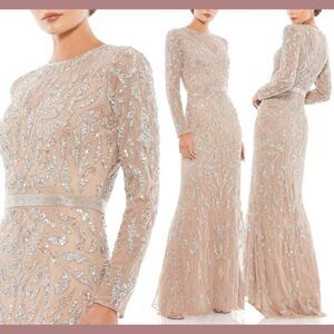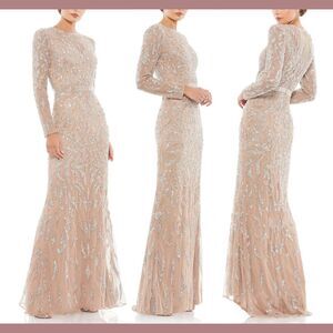NWT $598 Mac Duggal [ 14 ] Beaded Long Sleeve Evening Gown in Mocha #G1997
