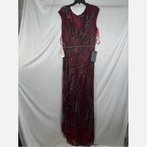 NWT $598 Mac Duggal [ 16 ] Intricate Beaded V-Neck High Slit Gown Burgundy S817