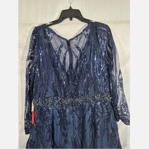 NWT $598 Mac Duggal [ 18 ] Damask Sequin Long Sleeve Gown in Midnight Blue S719