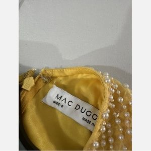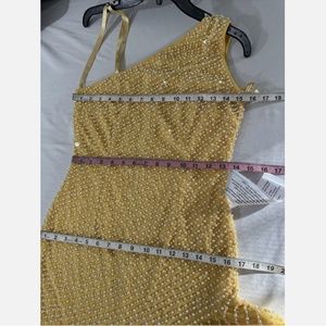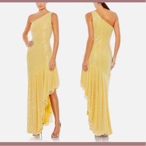 NWT $598 Mac Duggal [ 6 ] Pearl One Shoulder Asymmetrical Hem Dress Yellow