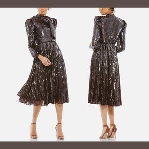 NWT $598 Mac Duggal [ SZ 6 ] Long Sleeve Tea Length Dress Dark Chocolate #Q558