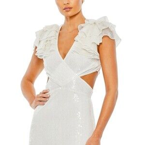 NWT $598 Mac Duggal WOMEN'S GOWN 10 Sequined Ruffled Cut Out Lace Up new