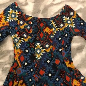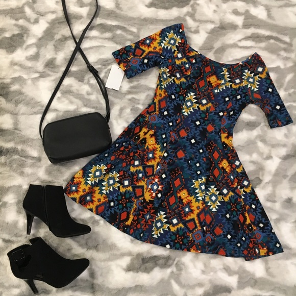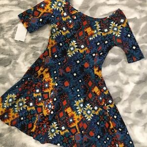 Adorable multicolored skater dress. NEVER WORN. So cute on and not too short. Can also be worn off the shoulder!
