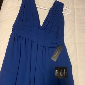 Never worn. Brand new with tags. I did get alterations done to this dress because i got it for a wedding and ended up wearing a different dress! I got it hemmed to fit me with heels on so if ur short it’s perfect you won’t need to pay for alterations. I’m 5 foot- 36 DD for reference.