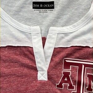 NWT 5th & Ocean size Large Texas A&M Logo Women’s T-shirt New Red White V-Neck