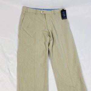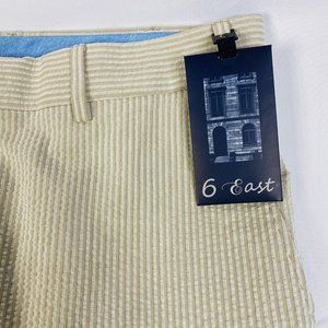NWT 6 East Beige w/ Tan Stripe Seersucker Ctn Unfinished Flat Front Pants 34X38