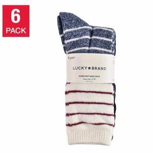 NWT 6 Pair Lucky Brand Ladies' Super Soft Boot Sock: Blue, Red, Grey & Beige
