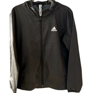 NWT $60 ADIDAS zipper windbreaker jacket black white S