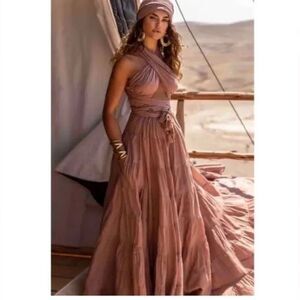NWT 600.00 Erika Pena Womens Selma Convertible Wrap Cotton Boho Maxi Dress M/L
